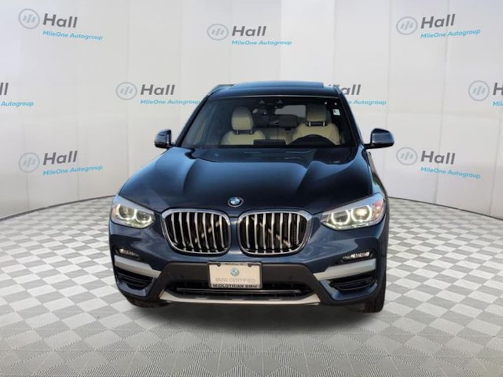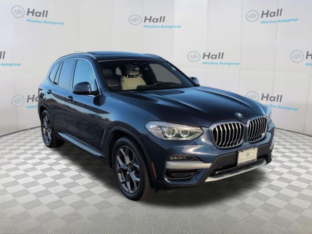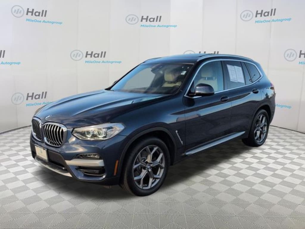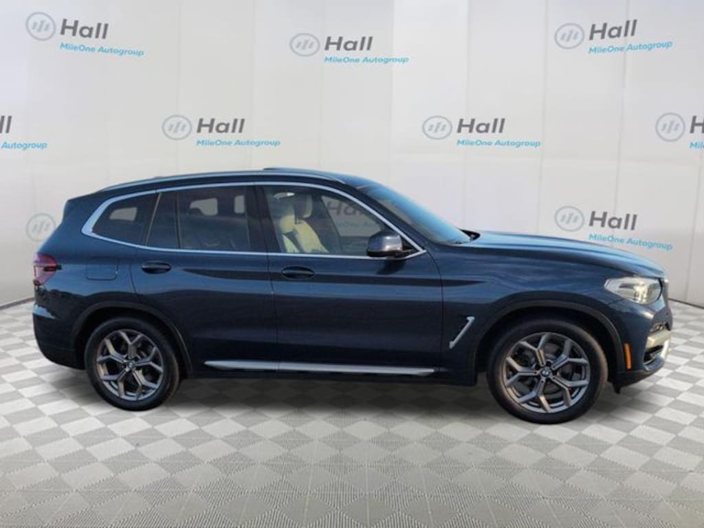 Phytonic Blue Metallic 2021 BMW X3 xDrive30i AWD 8-Speed Automatic Sport 2.0L I4 TwinPower Turbo We are currently offering Vehicle Purchase Home Delivery by appointment. Please contact for details., 8-Speed Automatic Sport, 12 Speakers, 3.385 Axle Ratio, 4-Wheel Disc Brakes, ABS brakes, Air Conditioning, Alloy wheels, Aluminum Interior Trim, AM/FM radio: SiriusXM, Apple CarPlay & Android Auto Compatibility, Apple CarPlay Compatibility, Auto-dimming door mirrors, Auto-dimming Rear-View mirror, Automatic temperature control, BMW Assist eCall, BMW TeleServices, Brake assist, Bumpers: body-color, Comfort Access Keyless Entry, Connected Package Plus, Connected Package Pro, ConnectedDrive Services, Delay-off headlights, Driver door bin, Driver vanity mirror, Dual front impact airbags, Dual front side impact airbags, Electronic Stability Control, Emergency communication system: BMW Assist eCall, Exterior Parking Camera Rear, Four wheel independent suspension, Front & Rear Heated Seats, Front anti-roll bar, Front Bucket Seats, Front Center Armrest, Front dual zone A/C, Front fog lights, Front reading lights, Fully automatic headlights, Garage door transmitter, Genuine wood dashboard insert, Genuine wood door panel insert, Head-Up Display, Heated door mirrors, Heated Front Seats, Heated Steering Wheel, Hi-Fi Sound System, Illuminated entry, Knee airbag, Live Cockpit Pro w/Navigation, Low tire pressure warning, Memory seat, Navigation, Navigation System, Occupant sensing airbag, Outside temperature display, Overhead airbag, Panic alarm, Panoramic Moonroof, Passenger door bin, Passenger vanity mirror, Power door mirrors, Power driver seat, Power Front Seats, Power Liftgate, Power passenger seat, Power steering, Power windows, Premium Package, Radio Control US, Radio data system, Radio: AM/FM Stereo w/HD, Rain sensing wipers, Rear air conditioning, Rear anti-roll bar, Rear reading lights, Rear seat center armrest, Rear window defroster, Rear window wiper, Remote keyless entry, Roof rack: rails only, Security system, SensaTec Upholstery, SiriusXM Satellite Radio, SiriusXM w/360L, Speed control, Speed-sensing steering, Speed-Sensitive Wipers, Split folding rear seat, Spoiler, Sport Bucket Seats, Sport steering wheel, Steering wheel mounted audio controls, Tachometer, Telescoping steering wheel, Tilt steering wheel, Traction control, Trip computer, Turn signal indicator mirrors, Variably intermittent wipers, Wheels: 18" x 7.0" Y-Spoke (Style 688), Wheels: 19" x 7.5" Y-Spoke (Style 693), WiFi Hotspot, 8-Speed Automatic Sport.