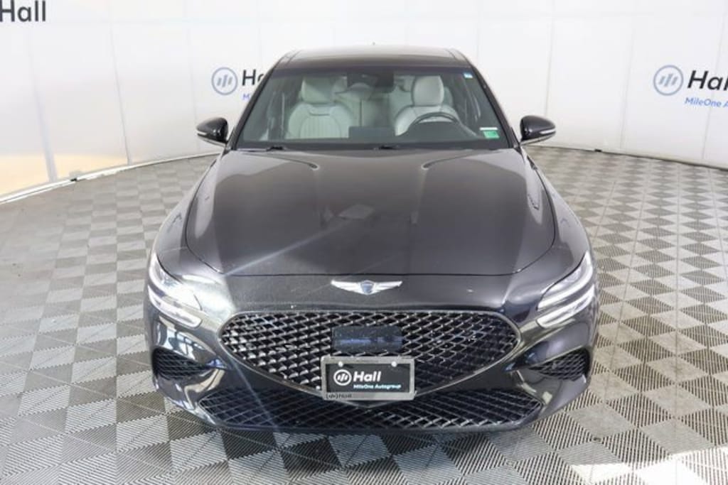 Sport Prestige Package (4-Way Power Lumbar Front Passenger Seat, Acoustic Front Door Glass, Alloy Pedals, Dark Chrome Grille & Daylight Opening Trim, Forward & Reverse Parking Distance Warning, Front Passenger Seat Walk-In Device, Integrated Memory System (IMS), Leather Seating Surfaces, Option Group 02, Power Folding ECM Outside Mirrors, Power Telescoping Steering Wheel, Radio: AM/FM/SiriusXM/HD Lexicon Prem Audio System, Rain-Sensing Wipers, Sport Aluminum Trim, Ventilated Front Seats, Wheels: 19" x 8.0J Fr & 19" x 8.5J Rr Sport Alloy, Wide Sunroof, and Wireless Device Charging), 4-Wheel Disc Brakes, 6 Speakers, ABS brakes, Air Conditioning, Alloy wheels, AM/FM radio: SiriusXM, Android Auto & Apple CarPlay, Anti-whiplash front head restraints, Auto High-beam Headlights, Auto-dimming Rear-View mirror, Automatic temperature control, Brake assist, Bumper Applique, Bumpers: body-color, Delay-off headlights, Driver door bin, Driver vanity mirror, Dual front impact airbags, Dual front side impact airbags, Electronic Stability Control, Emergency communication system: Genesis Connected Services, Exterior Parking Camera Rear, Four wheel independent suspension, Front anti-roll bar, Front Bucket Seats, Front Center Armrest, Front dual zone A/C, Front reading lights, Fully automatic headlights, Garage door transmitter: HomeLink, Heated door mirrors, Heated front seats, Heated Multi-Adjustable Front Bucket Seats, Heated steering wheel, Illuminated entry, Knee airbag, Leatherette Seating Surfaces, Low tire pressure warning, Navigation System, Occupant sensing airbag, Outside temperature display, Overhead airbag, Overhead console, Panic alarm, Passenger door bin, Passenger vanity mirror, Power door mirrors, Power driver seat, Power passenger seat, Power steering, Power windows, Premium First Aid Kit, Radio: AM/FM/SiriusXM/HD Audio System, Rear anti-roll bar, Rear reading lights, Rear seat center armrest, Rear window defroster, Remote keyless entry, Security system, Speed control, Speed-Sensitive Wipers, Split folding rear seat, Steering wheel mounted audio controls, Tachometer, Telescoping steering wheel, Traction control, Trip computer, Turn signal indicator mirrors, Variably intermittent wipers, Wheel Locks, and Wheels: 19" x 8.0J Fr & 19" x 8.5J Rr Alloy. Recent Arrival! 20/28 City/Highway MPG