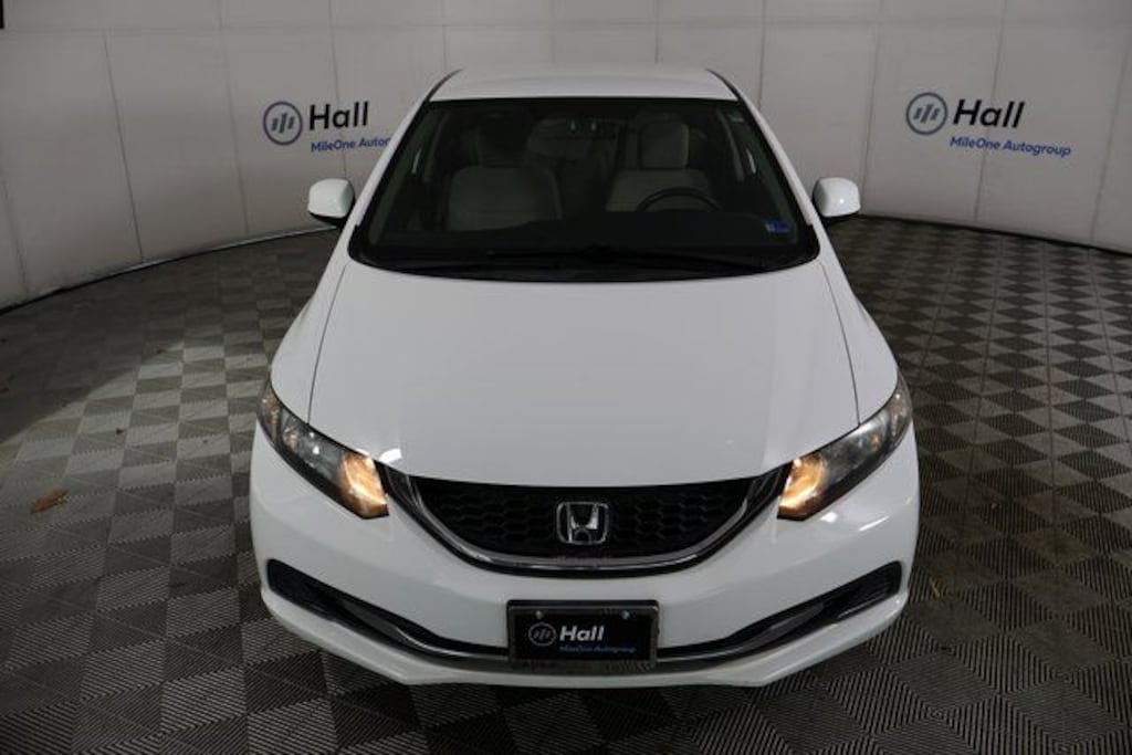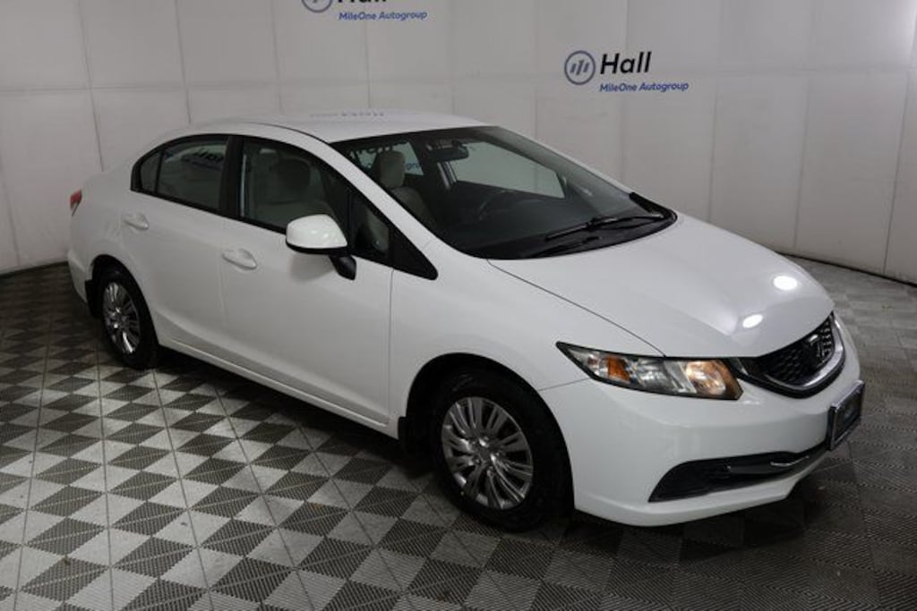 Clean CARFAX. White 2013 Honda Civic LX FWD Compact 5-Speed Automatic 1.8L I4 SOHC 16V i-VTEC Tan Cloth.