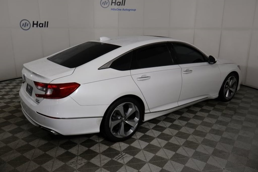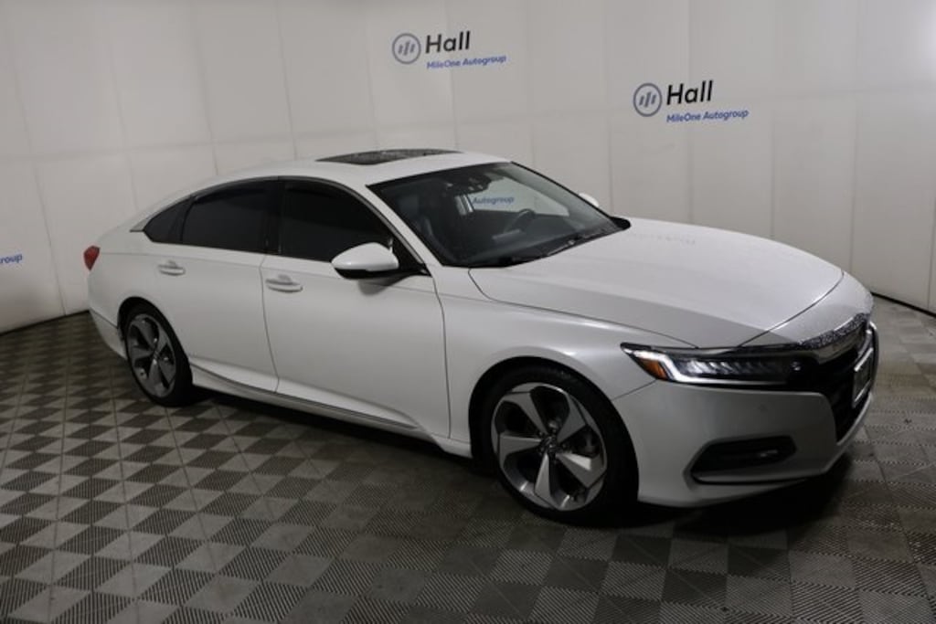 White 2019 Honda Accord Touring 2.0T FWD 10-Speed Automatic I4 DOHC 16V Turbocharged Black Leather.