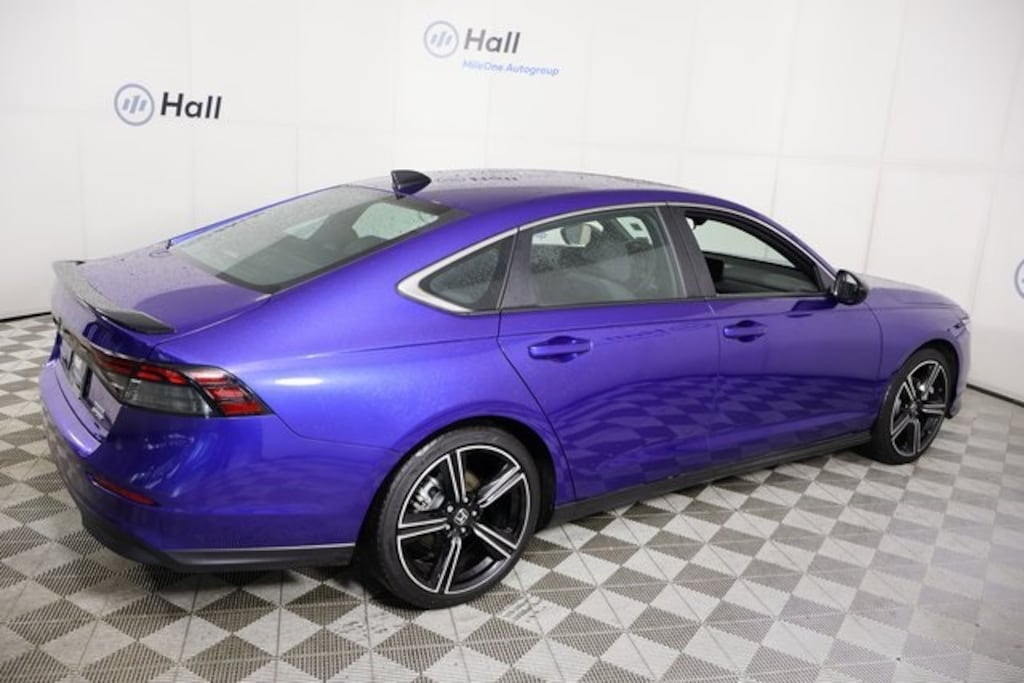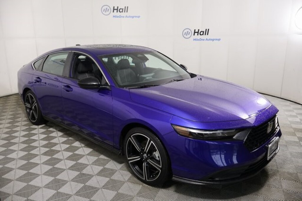 CARFAX One-Owner. Pearl 2024 Honda Accord Hybrid Sport FWD eCVT 2.0L 16V DOHC We are currently offering Vehicle Purchase Home Delivery by appointment. Please contact for details., 2.0L 16V DOHC, Air Conditioning, Alloy wheels, Apple CarPlay/Android Auto, Automatic temperature control, Blind Spot Information (BSI) System warning, Brake assist, Delay-off headlights, Dual front side impact airbags, Emergency communication system: HondaLink, Exterior Parking Camera Rear, Fabric Seat Trim, Four wheel independent suspension, Front Bucket Seats, Front Center Armrest, Front dual zone A/C, Fully automatic headlights, Knee airbag, Leather Shift Knob, Leather steering wheel, Low tire pressure warning, Occupant sensing airbag, Outside temperature display, Panic alarm, Passenger door bin, Power driver seat, Power moonroof, Power steering, Power windows, Radio data system, Radio: 180-Watt Audio System, Remote keyless entry, Security system, Speed-sensing steering, Speed-Sensitive Wipers, Traction control, Variably intermittent wipers.