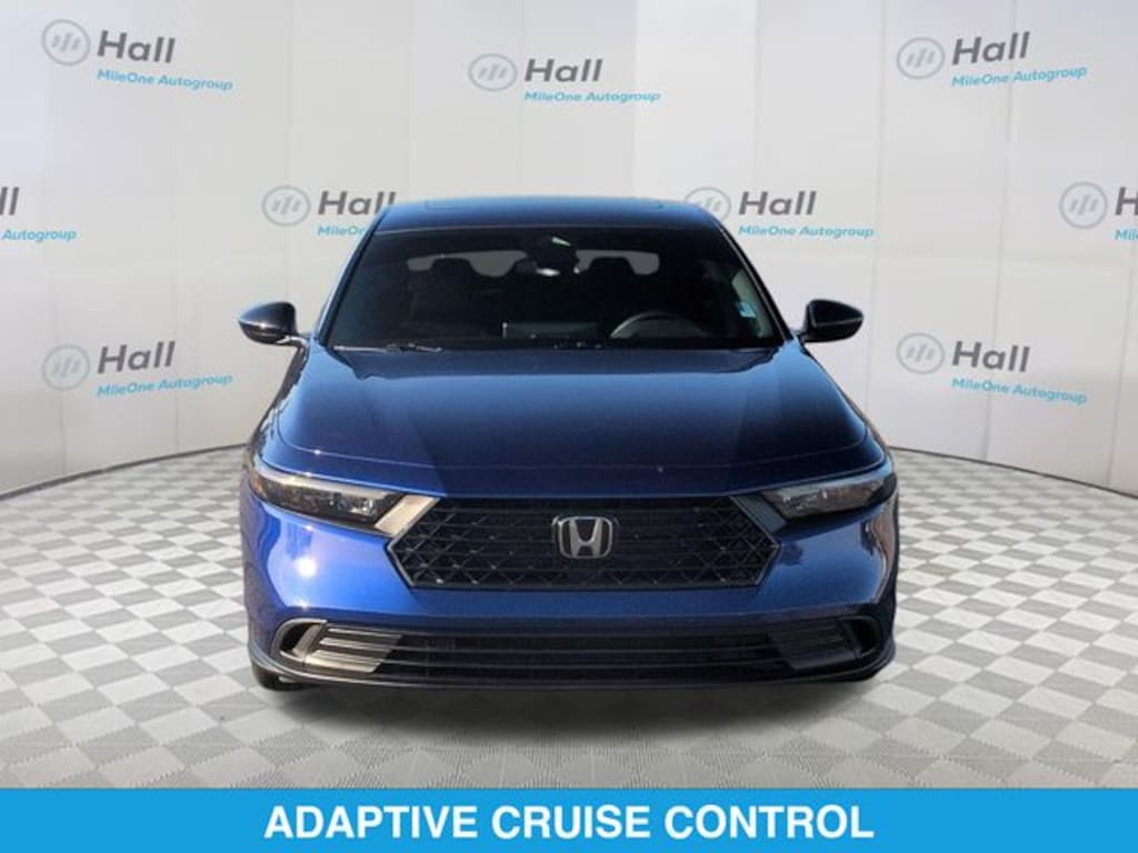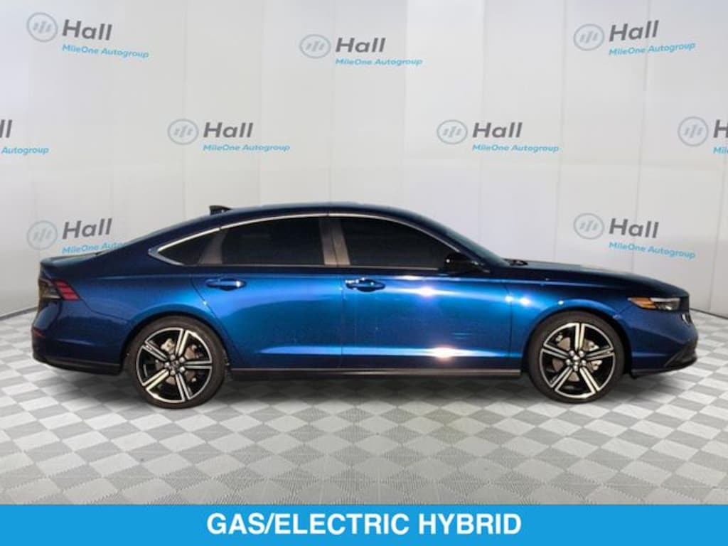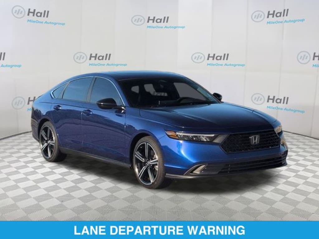 Clean CARFAX. 2025 Honda Accord Hybrid Sport FWD eCVT 2.0L I4 DOHC 16V We are currently offering Vehicle Purchase Home Delivery by appointment. Please contact for details., 2.0L I4 DOHC 16V, 4-Wheel Disc Brakes, 8 Speakers, ABS brakes, Adaptive Cruise Control: Adaptive Cruise Control (ACC) with Low-Speed Follow, Air Conditioning, Alloy wheels, AM/FM radio, Apple CarPlay/Android Auto, Auto High-beam Headlights, Automatic temperature control, Blind Spot Information (BSI) System warning, Brake assist, Bumpers: body-color, Compass, Delay-off headlights, Driver door bin, Driver vanity mirror, Dual front impact airbags, Dual front side impact airbags, Electronic Stability Control, Emergency communication system: HondaLink, Exterior Parking Camera Rear, Fabric Seat Trim, Four wheel independent suspension, Front anti-roll bar, Front Bucket Seats, Front Center Armrest, Front dual zone A/C, Front reading lights, Fully automatic headlights, Heated Front Bucket Seats, Heated front seats, Illuminated entry, Knee airbag, Lane departure: Lane Keeping Assist System (LKAS) active, Leather Shift Knob, Leather steering wheel, Low tire pressure warning, Occupant sensing airbag, Outside temperature display, Overhead airbag, Overhead console, Panic alarm, Passenger door bin, Passenger vanity mirror, Power door mirrors, Power driver seat, Power moonroof, Power steering, Power windows, Radio data system, Radio: 180-Watt Audio System, Rear anti-roll bar, Rear reading lights, Rear seat center armrest, Rear side impact airbag, Rear window defroster, Remote keyless entry, Security system, Speed control, Speed-sensing steering, Speed-Sensitive Wipers, Split folding rear seat, Spoiler, Steering wheel mounted audio controls, Telescoping steering wheel, Tilt steering wheel, Traction control, Trip computer, Variably intermittent wipers, Wheels: 19" x 8.5J Berlina Black, 2.0L I4 DOHC 16V.