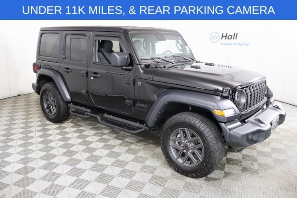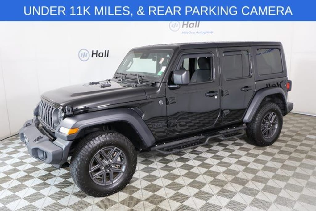Clean CARFAX. Black Clearcoat 2024 Jeep Wrangler Sport S 4WD 8-Speed Automatic 3.6L V6 24V VVT Wrangler Sport S, 4D Sport Utility, 3.6L V6 24V VVT, 8-Speed Automatic, 4WD, Black Clearcoat, Black Cloth, We are currently offering Vehicle Purchase Home Delivery by appointment. Please contact for details., 2-Door Passive Entry, Front Door Locks, 240 Amp Alternator, 7 & 4 Pin Wiring Harness, Advanced Brake Assist, Air Conditioning w/Auto Temperature Control, Air Filtering, Automatic Headlamps, Auxiliary Switches, Class II Receiver Hitch, Cluster 7.0" TFT Color Display, Convenience Group, Corning Gorilla Glass, Deep Tint Sunscreen Windows, Emergency/Assistance Call, Enhanced Adaptive Cruise Control, Front 1-Touch Down Power Windows, Full Speed Forward Collision Warning Plus, Heated Front Seats, Heated Steering Wheel, Power Heated Mirrors, Premium Wrapped Steering Wheel, Quick Order Package 24S Sport S, Remote Keyless Entry, Remote Start System, Security Alarm, Speed Sensitive Power Locks, Sport S, Sun Visors w/Illuminated Vanity Mirrors, Trailer Tow & Aux Switch Group, Universal Garage Door Opener, Wheels: 17" x 7.5" Gray.