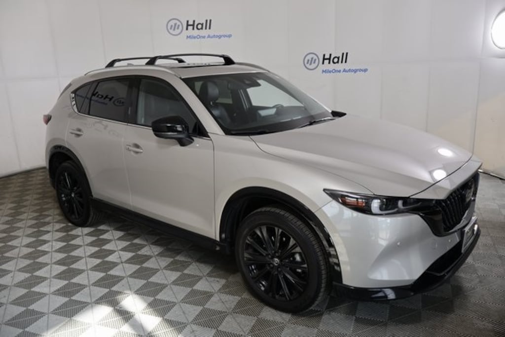 CARFAX One-Owner. Clean CARFAX. Certified. Platinum Quartz Metallic 2025 Mazda CX-5 2.5 Turbo Premium AWD 6-Speed Automatic 2.5L I4 We are currently offering Vehicle Purchase Home Delivery by appointment. Please contact for details., All-Weather Floor Mats, AppLink/Apple CarPlay and Android Auto, Auto High-beam Headlights, Black Lug Nuts & Black Wheel Locks, Delay-off headlights, Driver vanity mirror, E911 Automatic Emergency Notification, Front reading lights, Heads-Up Display, Heated front seats, Heated rear seats, Heated steering wheel, Heated/Ventilated Front Bucket Seats, Leather Seat Trim, Leather steering wheel, Memory seat, Multifunction Commander Control, Power driver seat, Power Liftgate, Power moonroof, Radio Broadcast Data System Program Information, Radio data system, Remote keyless entry, Retractable Cargo Cover, Roof Rails & Cross Bars Package, Ventilated front seats, Wheels: 19" x 7J Aluminum Alloy.