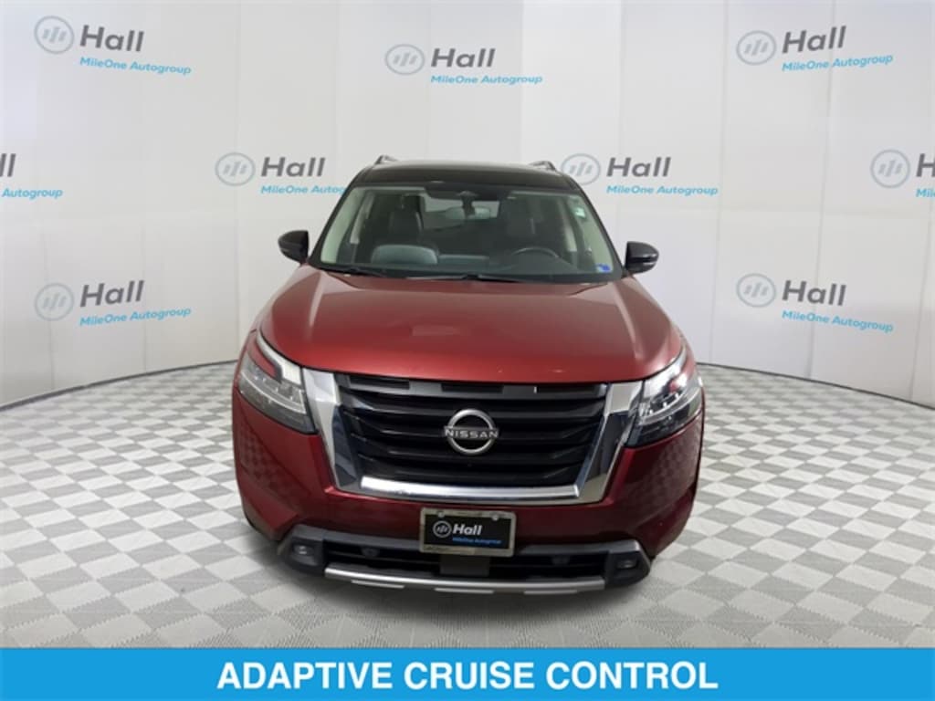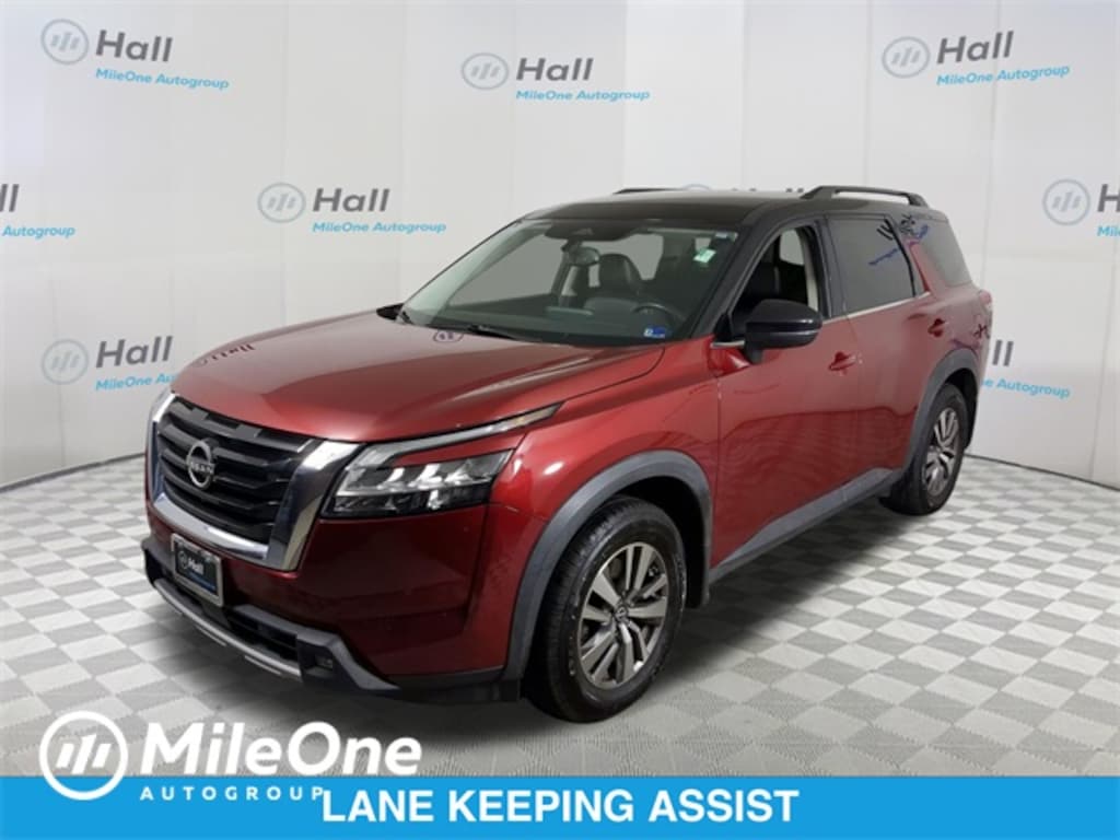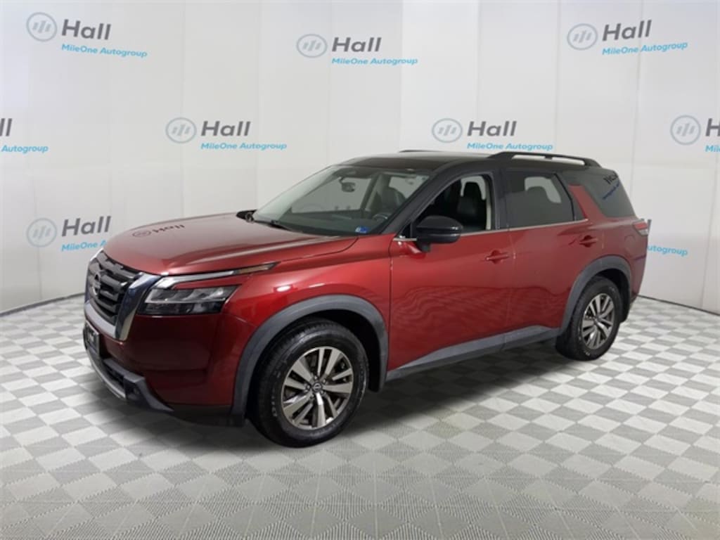 CARFAX One-Owner. Scarlet Ember Tintcoat/Super Black 2022 Nissan Pathfinder SL FWD 9-Speed Automatic V6 We are currently offering Vehicle Purchase Home Delivery by appointment. Please contact for details., Air Conditioning, AM/FM radio: SiriusXM, Axle Ratio: TBD, Black Splash Guards (Set of 4), Brake assist, Delay-off headlights, Dual front impact airbags, Dual front side impact airbags, Electronic Stability Control, Emergency communication system: NissanConnect Services, Exterior Parking Camera Rear, Front Bucket Seats, Front dual zone A/C, Front reading lights, Fully automatic headlights, Garage door transmitter: HomeLink, Heated front seats, Heated steering wheel, Leather Seating Surfaces, Navigation system: NissanConnect Navigation, NissanConnect w/Navigation & Services, Occupant sensing airbag, Passenger door bin, Passenger vanity mirror, Power steering, Power windows, Rear air conditioning, Rear seat center armrest, Reclining 3rd row seat, Speed control, Speed-sensing steering, Split folding rear seat.