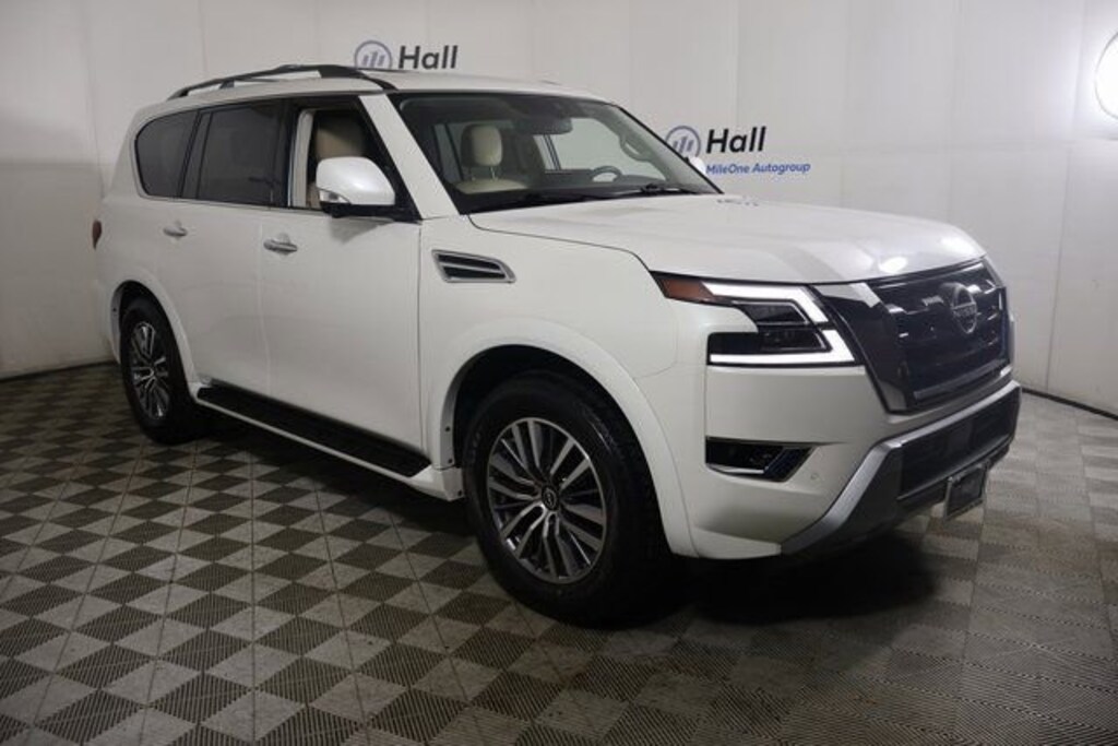 JUST ARRIVED. PENDING INSPECTION. Aspen White Tricoat 2023 Nissan Armada SL RWD 7-Speed Automatic 5.6L V8 DOHC 32V LEV3-ULEV125 400hp