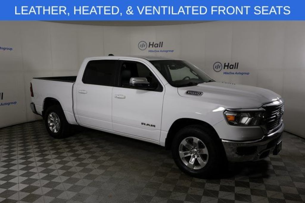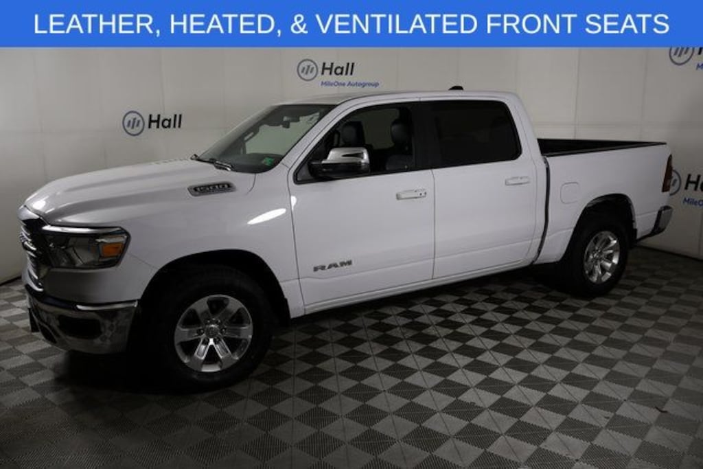 CARFAX One-Owner. Bright White Clearcoat 2024 Ram 1500 Laramie 4WD 8-Speed Automatic HEMI 5.7L V8 Multi Displacement VVT eTorque 1500 Laramie, 4D Crew Cab, HEMI 5.7L V8 Multi Displacement VVT eTorque, 8-Speed Automatic, 4WD, Bright White Clearcoat, Black Leather, We are currently offering Vehicle Purchase Home Delivery by appointment. Please contact for details., Brake assist, Electronic Stability Control, GPS Navigation, Navigation System, ParkView Rear Back-Up Camera, Quick Order Package 27H Laramie.